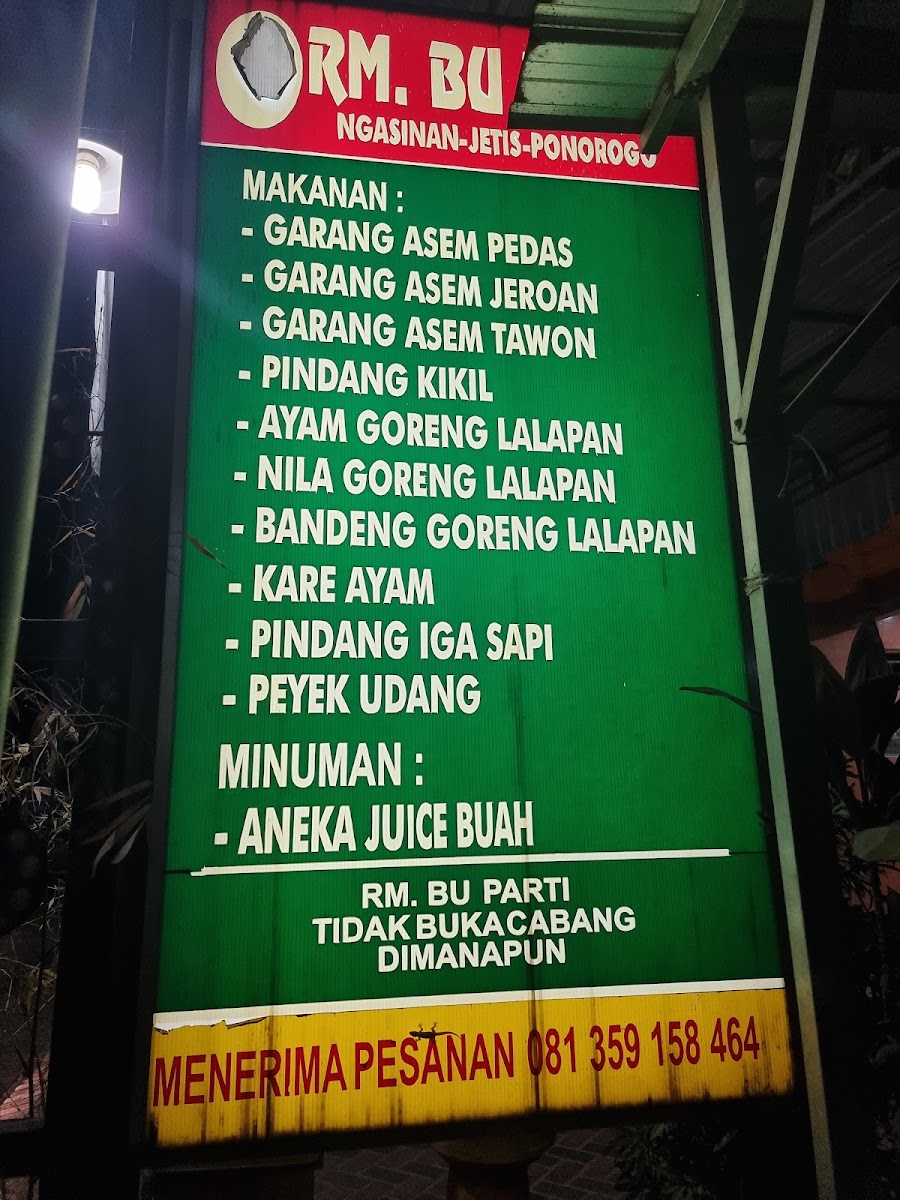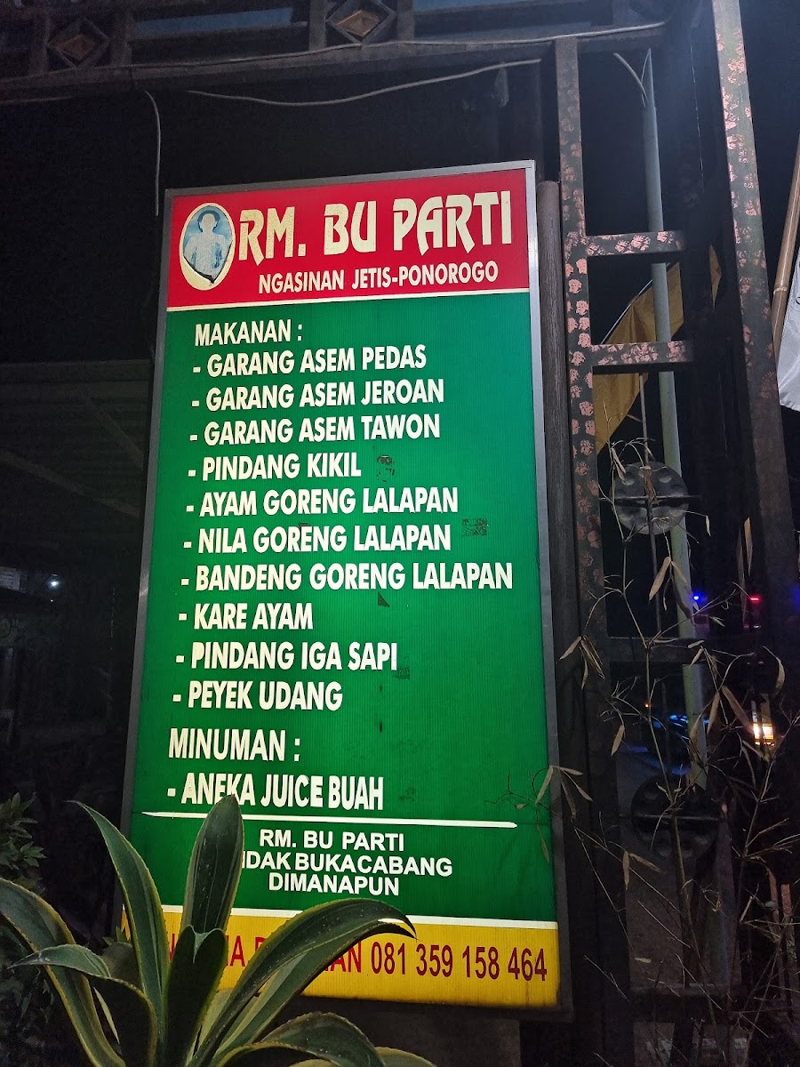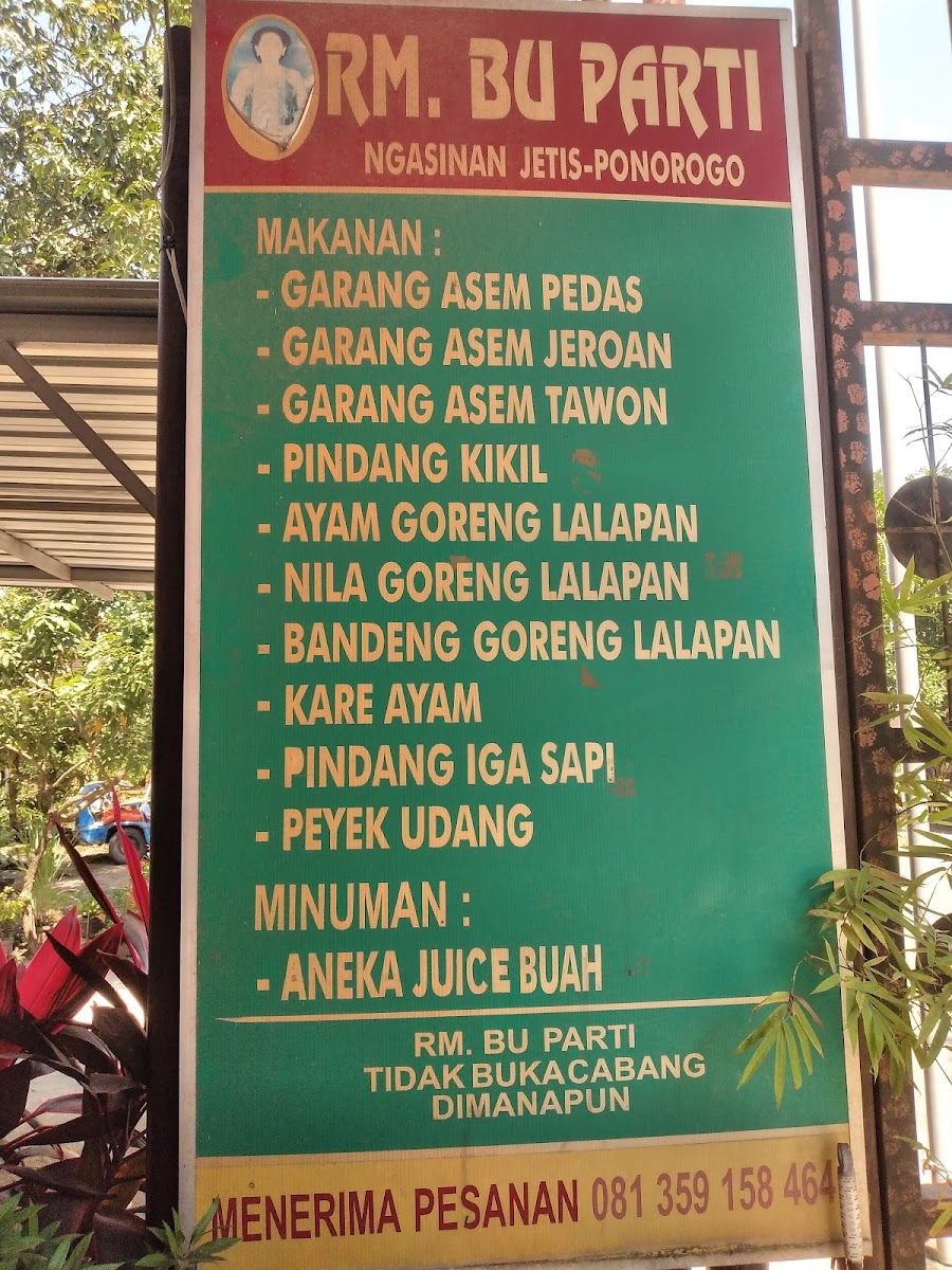 Welcome to RM Garang Asem Bu Parti, a hidden gem nestled in the heart of Ponorogo, Indonesia. This authentic Javanese restaurant is renowned for its spicy local cuisine, particularly the standout dish, Garang Asem Pedas, a mouthwatering steamed chicken wrapped in banana leaves that tantalizes the taste buds. Customers rave about the vibrant flavors and generous spice levels, but be warned—this isn’t for the faint-hearted!